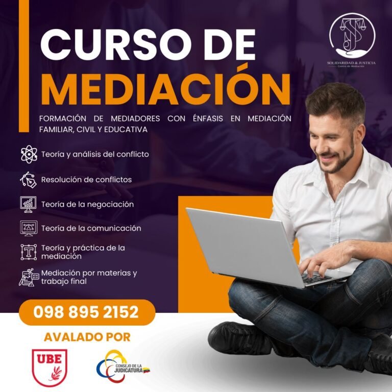 El curso, organizado por la Fundación Solidaridad y Justicia para la Paz Ciudadana y avalado por la Universidad Bolivariana del Ecuador, tiene como objetivo formar mediadores capacitados para abordar y solucionar conflictos mediante el diálogo y otros mecanismos alternativos, fomentando así la cultura de paz y el entendimiento social.